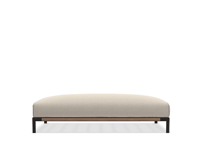 Baia has soft cushions resting on a base bordered by a system of fabric-upholstered panels. All the upholstery, with a soft comfortable handle, have properties and characteristics that ensure their performance in any outdoor context or situation and ensure that the furnishings preserve all their original beauty and function over time.